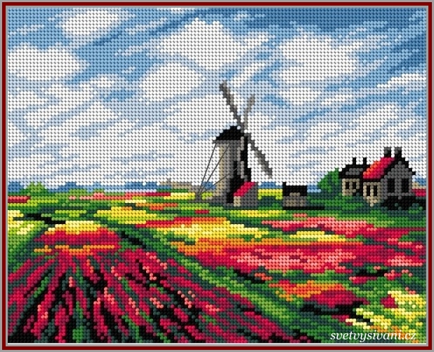 Gobelínové plátno - stramín 4 oka na 1 cm s natištěným obrázkem.Vyšíváme gobelínovým stehem.