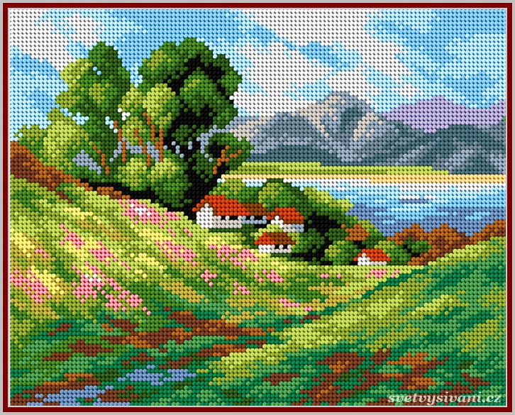 Gobelínové plátno - stramín 4 oka na 1 cm s natištěným obrázkem.Vyšíváme gobelínovým stehem.